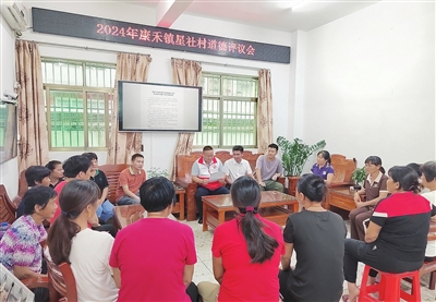 近日,东源县康禾镇星社村开展主题为“推动移风易俗·倡导文明新风”2024年第三季度道德评议会,村“两委”干部、党员代表、村民代表等围桌而坐,大家围绕乡村精神文明建设等畅所欲言、各抒己见,谈论乡村治理的新变化,讲述身边好人好事,弘扬社会正能量。