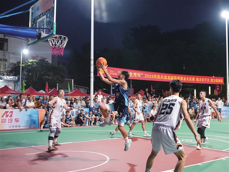 8月11日,“华丰金湾杯”2024河美共赢篮球联赛东源大区赛骆湖分赛区开赛,10支村居代表队将在8天的赛程里展开25场次激烈角逐。