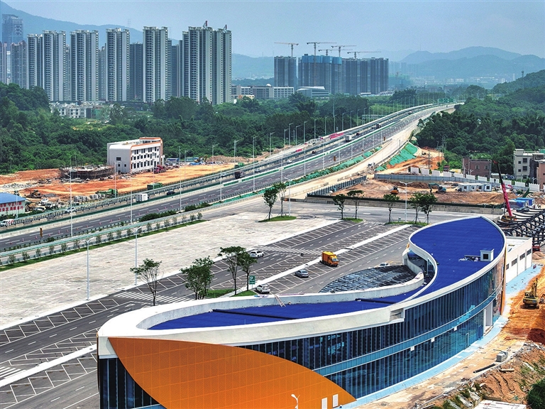 这是9月12日拍摄的即将投入使用的新建沈海高速深汕特别合作区服务区(无人机照片)。当日,中铁十一局承建的沈海高速深(深圳)汕(汕尾)西段高速公路改扩建工程主体完工。 新华社 发
