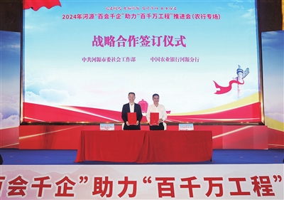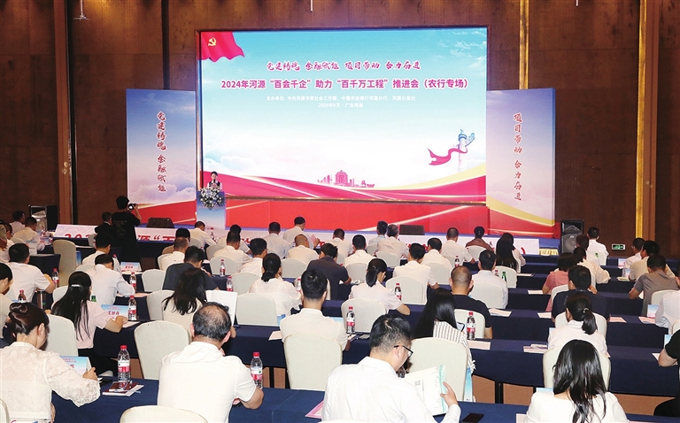 ○本报讯 记者 陈思芬 昨日,市委社会工作部、中国农业银行河源分行和河源日报社联合举办了以“党建铸魂 金融赋能 项目带动 合力奋进”为主题的2024年河源“百会千企”助力“百千万工程”推进会(农行专场)。市、县两级党委社会工作部及江东新区组织人事和社会保障局,中国农业银行河源分行及辖内6家一级支行,75家全市性行业协会商会齐聚一堂,共谋共商“百会千企”助力“百千万工程”。