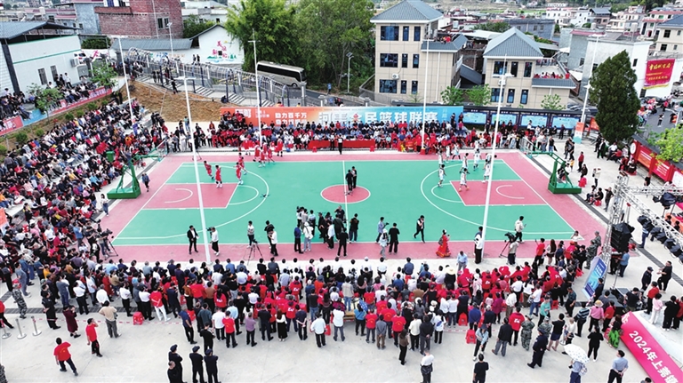 而今年一场赛程持续全年的“村BA”将东源农文旅体融合发展推进到了一个崭新阶段。2月21日,河源最大规模“村BA”赛事——“华丰金湾杯”2024河美共赢篮球联赛开幕式在东源上莞镇新轮村拉开帷幕。球赛与民俗节庆(“吊灯节”)融合带来的叠加效应,让东源县委、县政府认识到,球赛不仅仅是一场体育赛事,更是促进农文旅体融合发展,助力“百千万工程”的助推器。