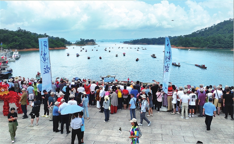 “出船捕鱼咯!”7月1日,东源正式进入开渔期。停泊在万绿湖码头的数十艘渔船扬帆起航,破浪而行,满载而归。这是每年万绿湖开渔时的热闹场景。