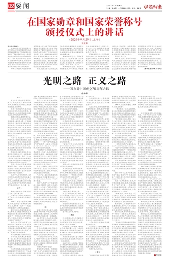 路的变迁,见证75年来“史诗般的进步”,镌刻着一个古老民族复兴圆梦的坚实足迹。正是沿着中国式现代化道路奋勇前行,我们创造了世所罕见的“两大奇迹”、开辟了民族复兴的光明前景。