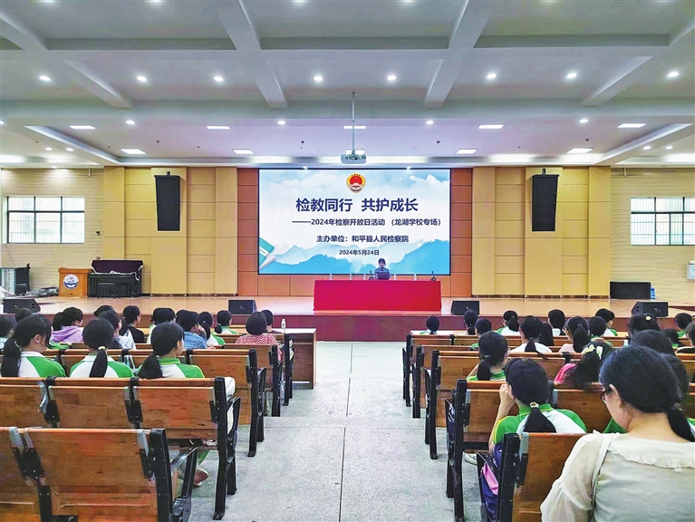 今年秋季开学第一天,和平县龙湖学校的600多名学生收到了一份来自和平县人民检察院的法治“开学大礼包”——《“新少年”和平检察课堂》专版法治宣传报纸。当天,和平县人民检察院的检察官作为该校法治副校长,走进课堂给同学们带去了一堂生动的法治课。