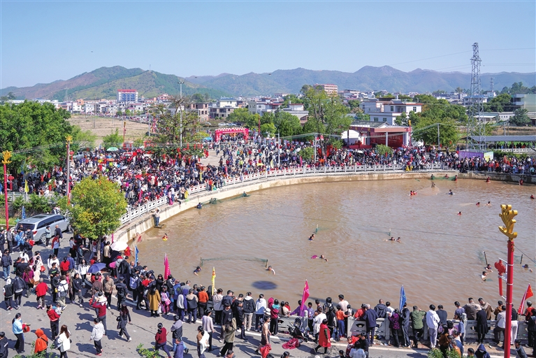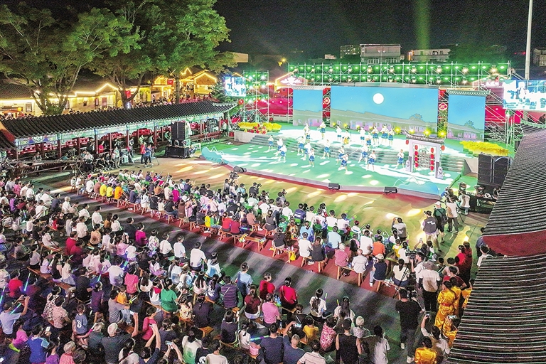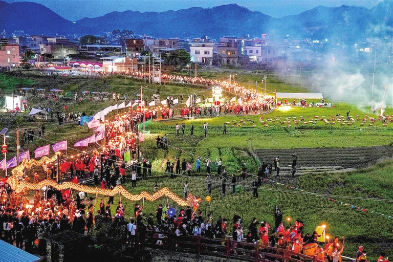 除了常规的文化活动,东源还注重挖掘和传承年俗文化,举全县之力、历时一年多时间编撰完成《东源县文化普查全集》(10册),内容涵盖红色、绿色、古建筑、民间故事、非遗文化等领域。每年,县里都会组织展演龙舞、香火龙、汶水塘捕鱼节、仙塘“柳溪书院”开笔礼、上莞新轮追龙、六月六显烈宫巡游节等特色鲜明的年俗活动。这些活动不仅展示了东源丰富的非物质文化遗产,还增强了群众对传统文化的认同感和归属感。近年来,东源还深入开展“非遗过大年 文化进万家”系列活动,重点举办了漳溪畲族乡汶水塘捕鱼节、上莞镇新轮村追龙、船塘镇追火龙、骆湖镇江坑追龙等民俗活动,受众人群达到5万余人次,多家新闻媒体报道了这些活动,央视网直播点播量更是达到了100万人次。今年9月15日,2024全国秋季“村晚”示范展示活动在东源县仙塘镇南园古村璀璨启幕,向外界生动展现了东源独特的乡村魅力和乡村振兴的文化活力,编织了一幅乡村文化繁荣的绚丽画卷,“点亮”乡村文化夜空。