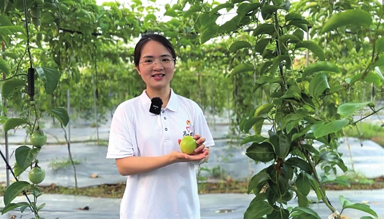 “谢谢大家,我给大家看看这边的鹰嘴桃,我们来探索一下鹰嘴桃的故事。”黄丽颖作为广东乡村振兴志愿者兼彭寨镇驻镇帮扶工作队的一员,已返乡助力乡村振兴3年,她不仅是乡村振兴的践行者,更是一名乡村宣传员,用实际行动诠释了青春与奉献的真谛。