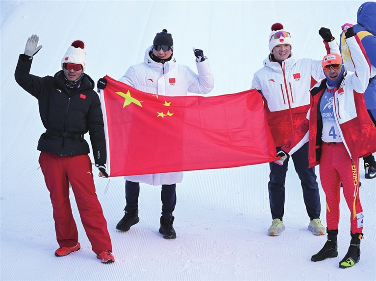 当日,第九届亚冬会越野滑雪男子4×7.5公里接力决赛在亚布力举行。中国队获得冠军。 新华社 发
