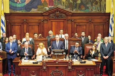 ■ 3月1日,乌拉圭当选总统奥尔西在位于蒙得维的亚的国会宣誓就职并发表演讲。