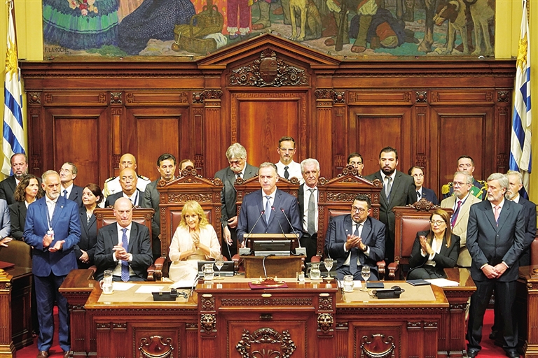 乌拉圭当选总统亚曼杜·奥尔西1日在乌国会宣誓就职,开启为期5年的任期。新华社 发
