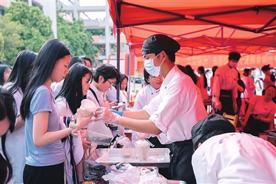 ■河源技师学院烹饪专业学生自制美食搬上爱心摊位。