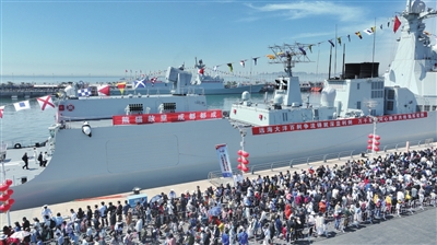 现役舰艇开放是备受民众关注的活动,今年海军开放舰艇超过30艘,型号、数量均超过往年。结合“战舰回家乡”活动,海南舰、秦皇岛舰、潍坊舰、五指山舰、三亚舰等现役舰船靠泊命名省份或城市,南京舰、六安舰靠泊人民海军诞生地江苏泰州,郑和舰靠泊郑和下西洋起锚地江苏太仓,受到当地党政机关和群众热烈欢迎。在山东青岛,成都舰、唐山舰、临沂舰、日照舰、可可西里湖舰等5艘舰船悬挂满旗靠泊开放,几只憨态可掬的大熊猫模型带着“第二故乡”的问候,趴在成都舰舰舷,吸引参观群众打卡拍照。青岛也成为开放战舰次数最多、单次开放战舰数量最多的城市。在黄浦江畔,沂蒙山舰、西安舰靠泊上海港国际客运中心码头,与地标建筑东方明珠广播电视塔同框出镜。