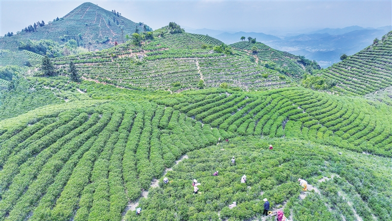 ○本报讯 记者 田红秀 李成东 特约记者 蓝天明 张小建 近日,东源县上莞镇仙湖村万亩茶园陆续进入采摘期。连绵起伏的茶山上,嫩芽吐翠、茶香弥漫,万名采茶工人穿梭在茶园间,抢抓晴好天气,共同采摘2025年春季第一捧“绿叶子”,收获绿美仙湖“春茶经济”。