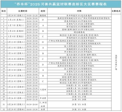 5月2日,2025河美共赢篮球联赛东源大区赛蓝口“深工杯”男子篮球赛将火热开赛。东源大区赛仙塘分赛区开幕式暨糖巢创客社区三人篮球争霸赛将在仙塘镇糖巢篮球场激情上演,此外,5月1日,万达广场闪耀星幼儿篮球赛将在东源万达广场精彩上演,小球员们将在赛场上展现篮球运动的无限活力。江东新区大区赛同样精彩纷呈,5月1日,2025河美共赢江东新区大区临江镇澄岭村“村BA”篮球赛将在江东新区澄岭村文化广场火热开打,为当地村民和篮球爱好者带来一场充满乡土气息的篮球盛宴。(本报记者 曾競 )