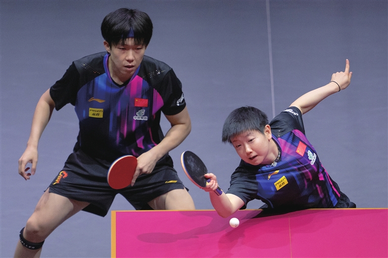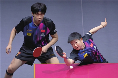 ○新华社多哈5月23日电 王楚钦和孙颖莎23日在世乒赛混双半决赛中,以3比0力克韩国组合林仲勋/申裕斌闯入决赛,距“三连冠”只差最后一步。