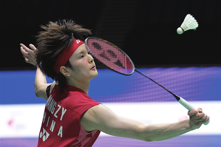 当日,在2025年新加坡羽毛球公开赛女单1/4决赛中,中国选手王祉怡2比0战胜泰国选手李美妙,晋级4强。新华社 发