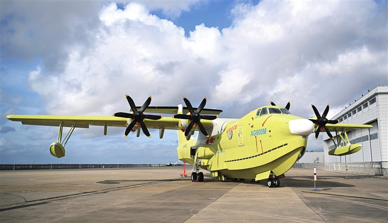 6月11日,在珠海中航通飞华南飞机工业有限公司,现场展示的批量生产的首架AG600飞机。