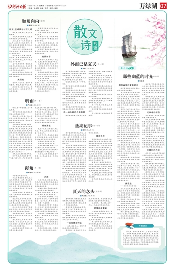 当夕阳潜游在小南河平静的波光里,闷热了一天的村庄,生出了风秧子,门前酸枣树细碎的叶子开始摇晃。雀鸟们在枝叶间欢腾,与虫鸣连成一大片,漫游在浅蓝的暮色中,空气中充溢着树叶、瓜花、柴烟和青草混合的气味。