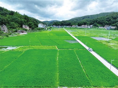 ■近日,在紫城镇仕贵村,田野阡陌纵横,生机勃勃。从高空俯瞰,笔直的村道犹如大地织就的丝带,镶嵌在绿油油的稻田中,与错落有致的村居相映成辉,构成一幅美丽的早秋田园画卷。