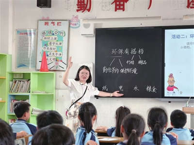 刘舒玉推崇“舒展教育”,其核心是接纳与信任。她曾在市一小二年级某班的道德与法治课上遇到洋洋(化名)——一个情绪敏感、常常“放飞自我”的学生。一堂课上,洋洋打翻水杯,浑身湿透、情绪激动。刘舒玉没有批评他,而是蹲下来帮他擦桌子、晾衣服。她没有讲大道理,但洋洋却慢慢平静下来。