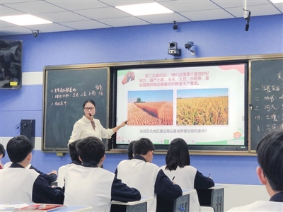 她不喜欢直接播放现成的课件,而是习惯一边讲,一边在黑板上画出地形图、气候分布图,甚至是一条河流的走向。“板书、板图、板画”,这是她自创的“三板”教学法。教《东北地区》这一课时,她手绘出东北地形轮廓,标注出长白山、松花江等地,再配上当地实景视频。下课后,有学生兴奋地告诉她:“老师,我好像真的站在雪地里了。”