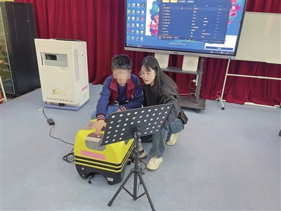 “听力障碍且情绪敏感的学生抵触传统钢琴互动,为语言发育迟缓的学生改编儿歌两周还是收效甚微……”刚工作没多久,朱莉雅就遇到教学适配难题。经过一番苦思冥想,她决定尝试重构教学逻辑,创新推出“唱游律动”教学模式。该模式以“康复与音乐并重”为核心,在课前开展“身心双评估”,针对肢体协调性弱的学生设定“律动练关节”目标,为情绪易波动学生规划“音乐平绪”方案。此外,她还在教学中改编经典素材,将歌曲《小星星》转化为“手指谣”锻炼手部精细动作,用欢快节奏搭配踏步、转身提升身体协调性。同时,引入奥尔夫乐器,通过击打响板、摇晃沙锤等方式,让学生在节奏感知中强化专注力。