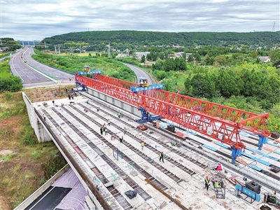 10月12日,由中铁五局承建的京昆高速广元至绵阳段扩容工程牛头河大桥完成最后一片T梁架设,标志着绵阳段完成全部架梁,为全线建成通车奠定坚实基础。新华社 发